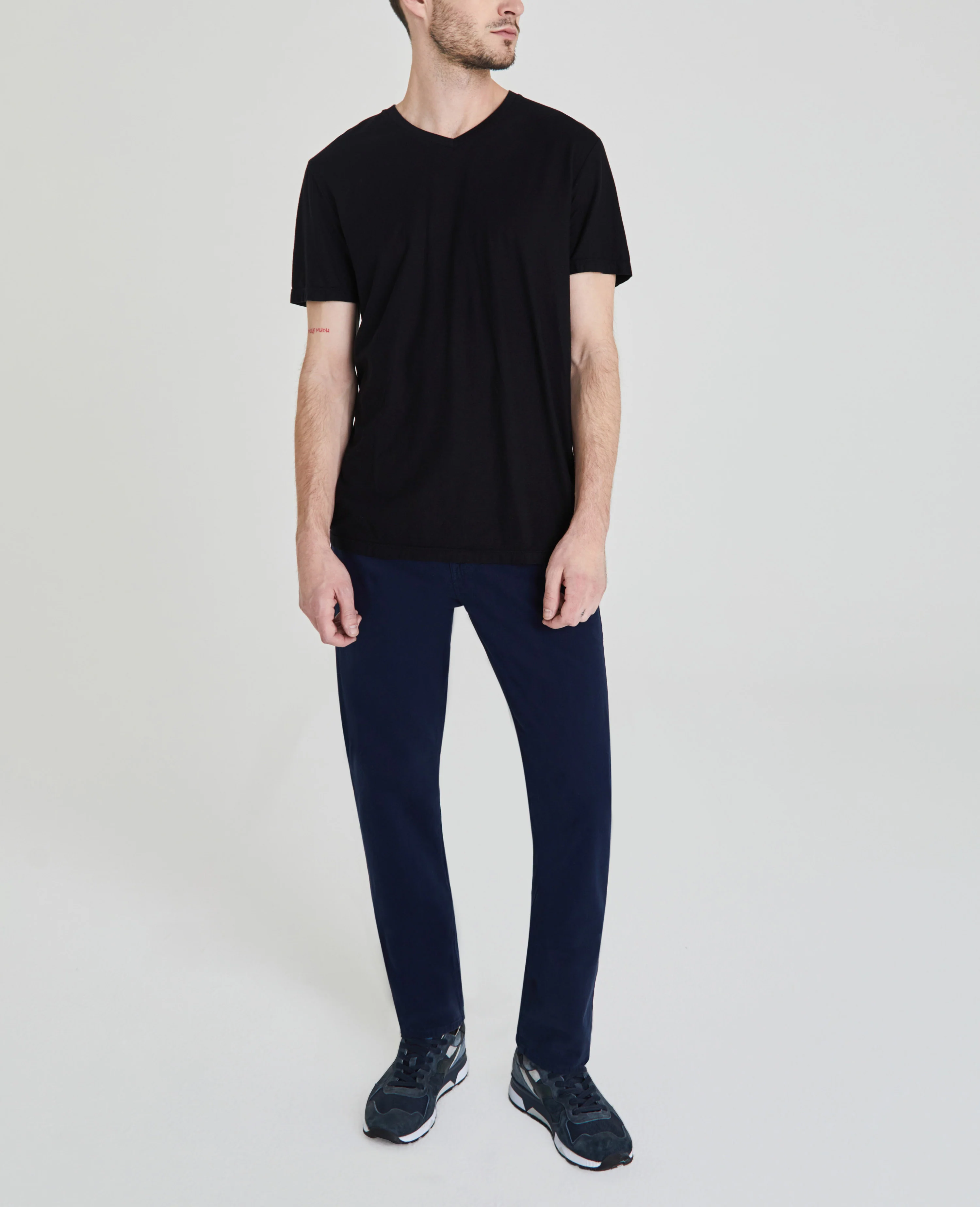The Bryce Crew Tee for men features a true black hue and a classic v-neck line. This men’s t-shirt is designed in lightweight fabric made from 100% cotton fibers that are thoughtfully knitted to prevent torqueing. This AG exclusive fabric offers a durable 20/1 knit that withstands everyday wear through the seasons.